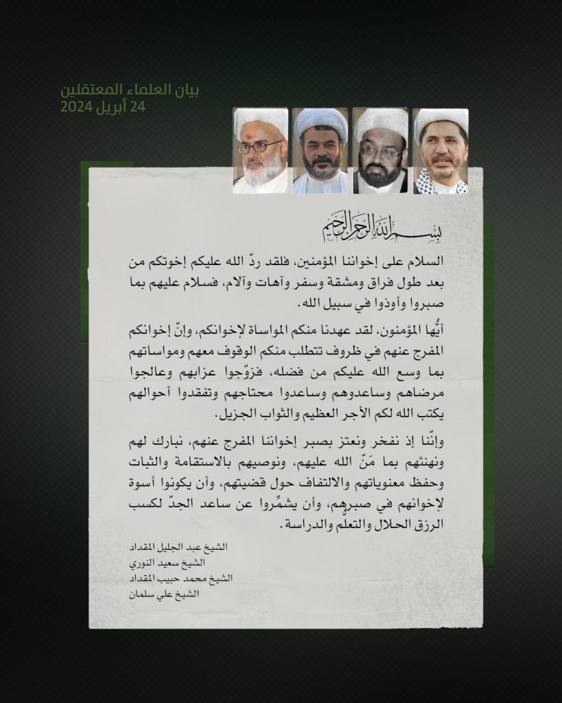 العلماء المعتقلون: إخوانكم المفرج عنهم في ظروف تتطلب منكم الوقوف معهم
