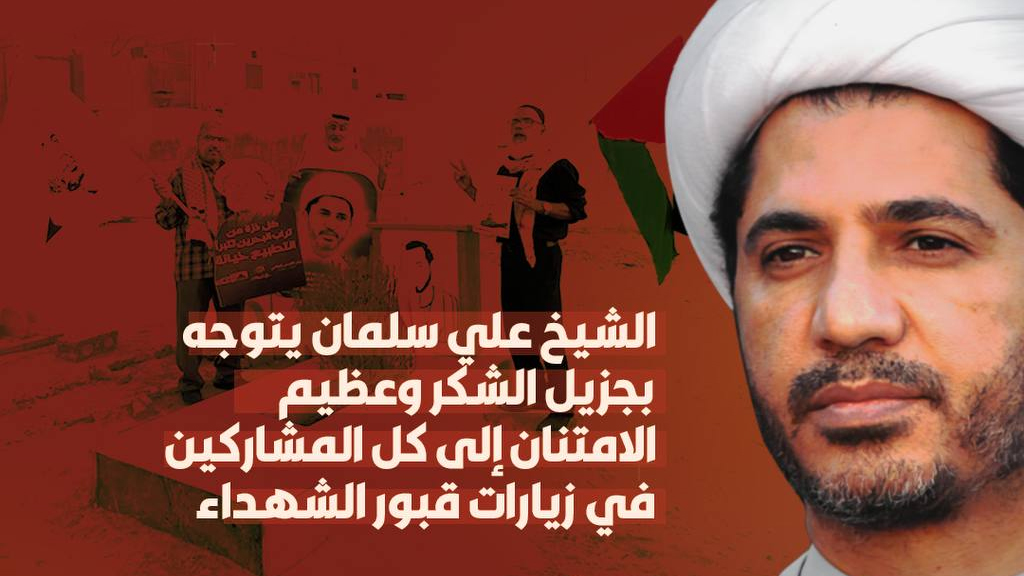 سماحة الشيخ علي سلمان يتوجه بجزيل الشكر وعظيم الامتنان إلى كل المشاركين في زيارات قبور الشهداء جرياً على العادة في الأعياد المباركة.