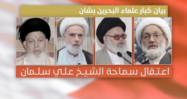 كبار العلماء : ما أقدمت عليه السلطة بإعتقال الشيخ علي سلمان تمثل إهانة كبرى لكل الشعب واستخفافاً بكرامته