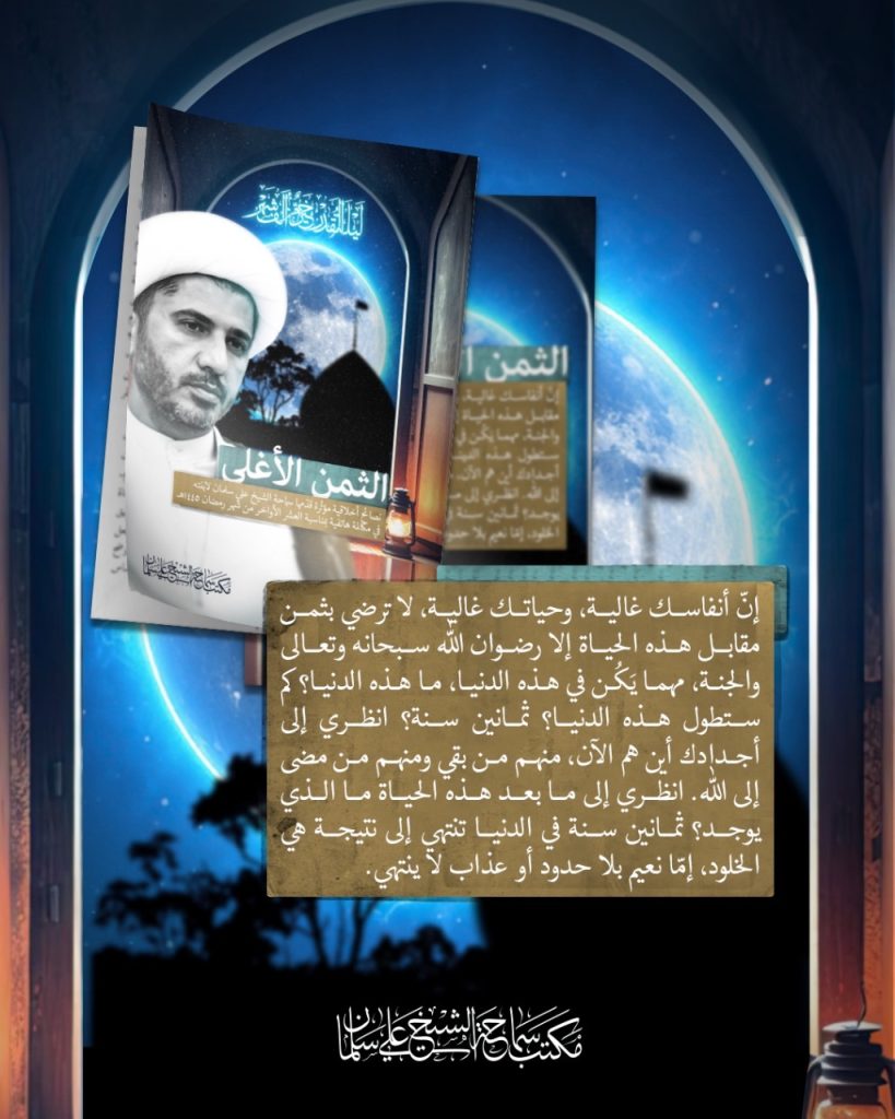 مكتب الشيخ علي سلمان يصدر “الثمن الأغلى”